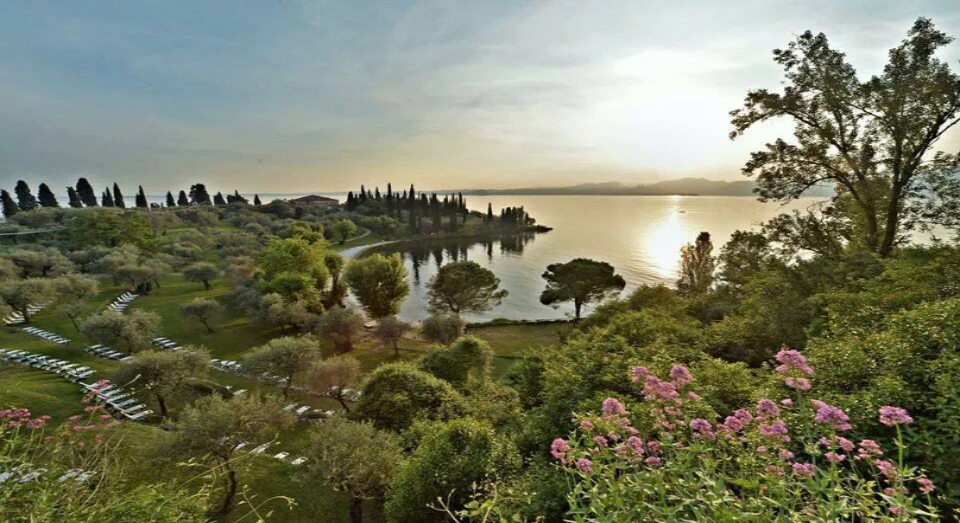 From the private beach or from the shade of magnificent olive trees, sunsets on Lake Garda